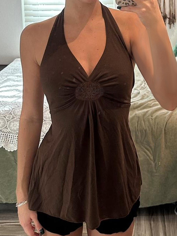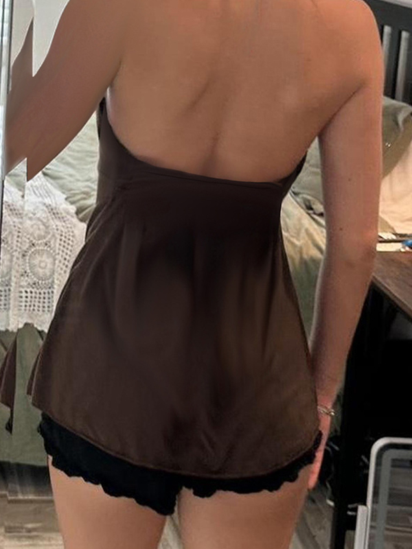 Lace V Neck Cami Top&Mesh Mini Skirt Set