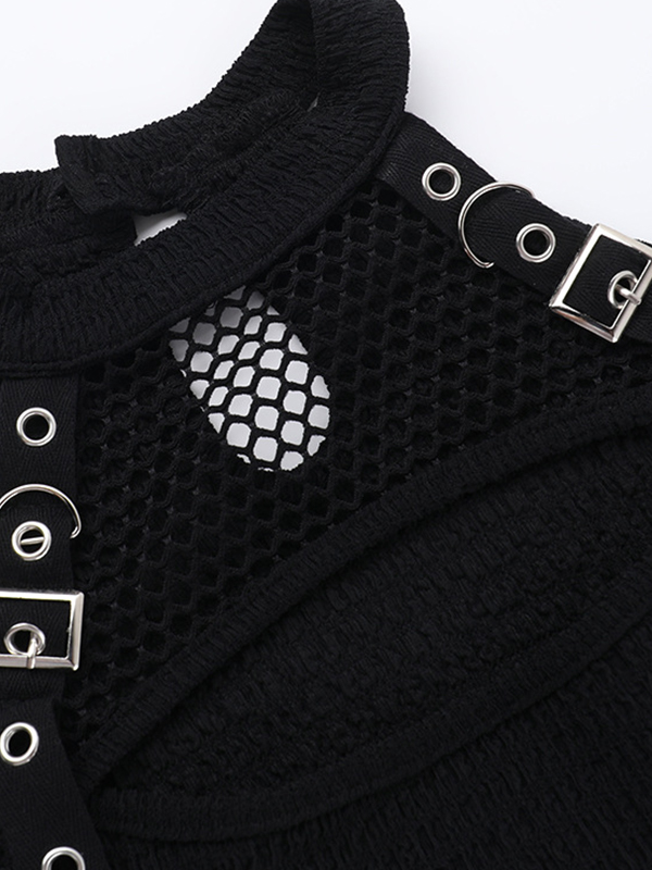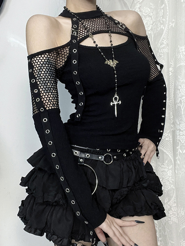 / Off Shoulder Fishnet Long Sleeves Tee
