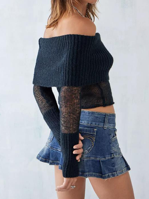 Off Shoulder Splice Thin Long Sleeve Knit quantity