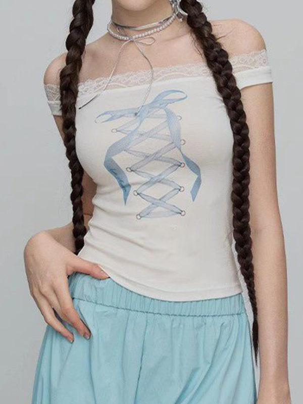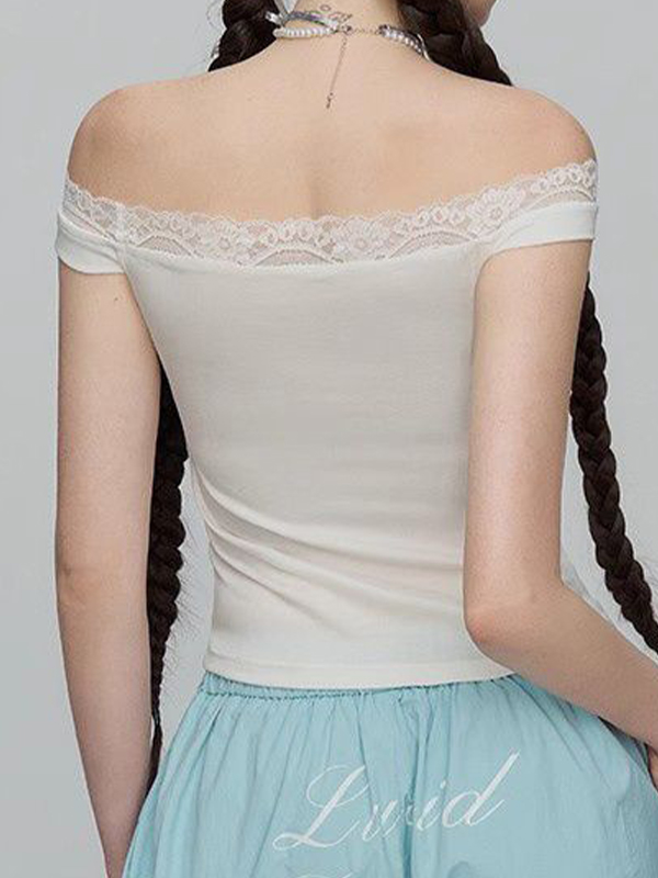 / One Shoulder Lace Short Sleeve Tee