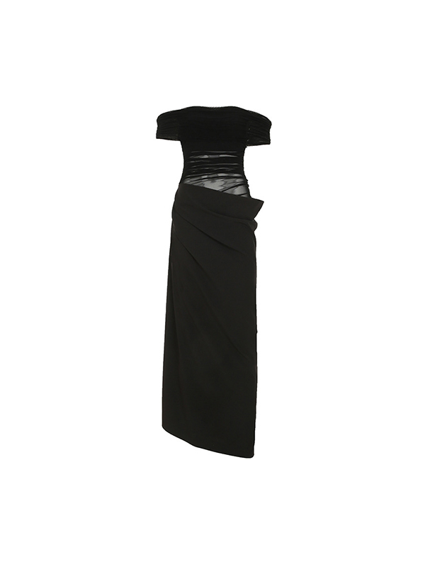 / One-Shoulder Mesh Patchwork Maxi Dress
