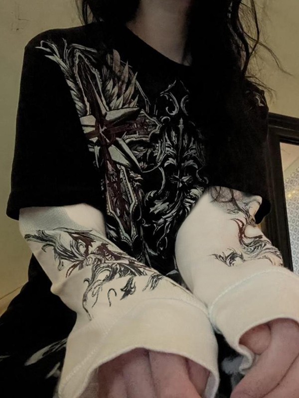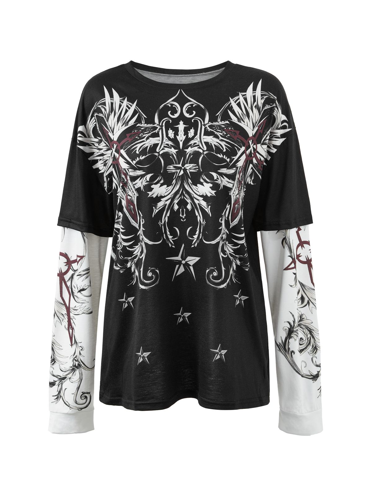 Punk Patchwork Long Sleeve Graphic Tee quantity