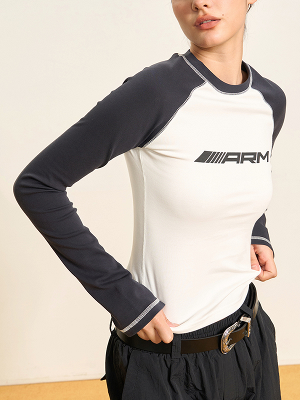 / Raglan Contrast Color Slim Long Sleeve Tee