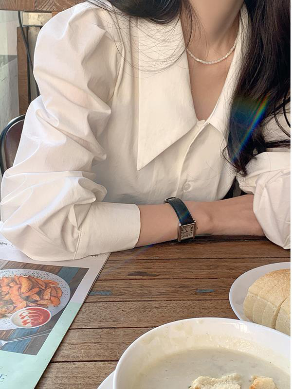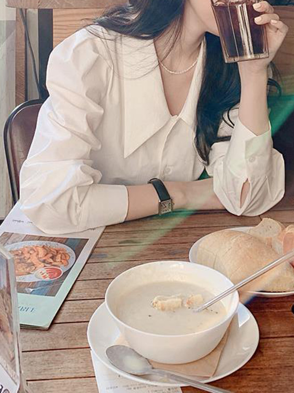 / Retro Simple White Long Sleeves Shirts