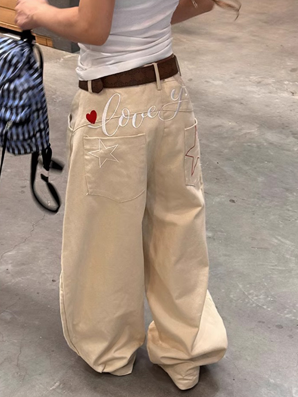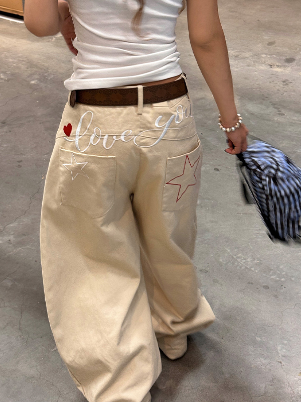 / Retro Star Letter Embroidery Boyfriend Jeans