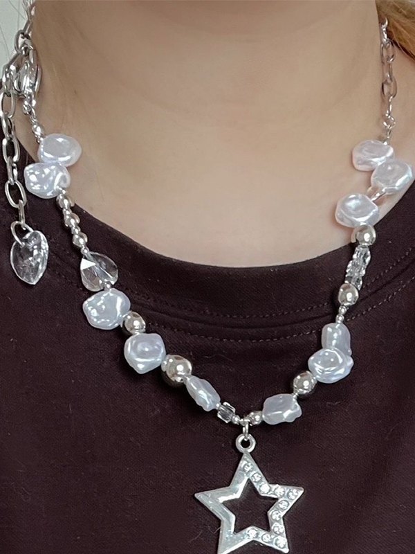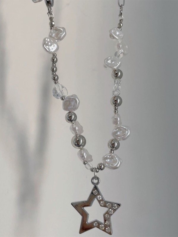 / Rhinestone Star Beads Chain Necklace