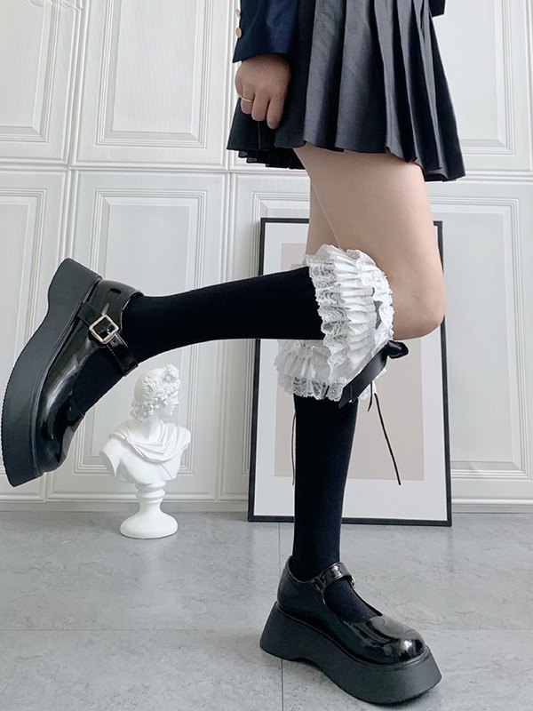 / Ruffle Lace Trim Knee High Socks