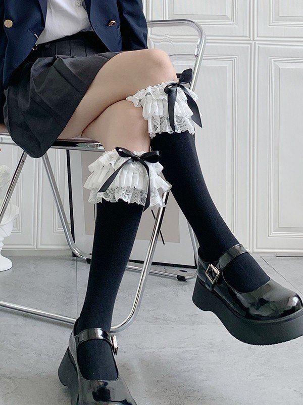 Ruffle Lace Trim Knee High Socks quantity