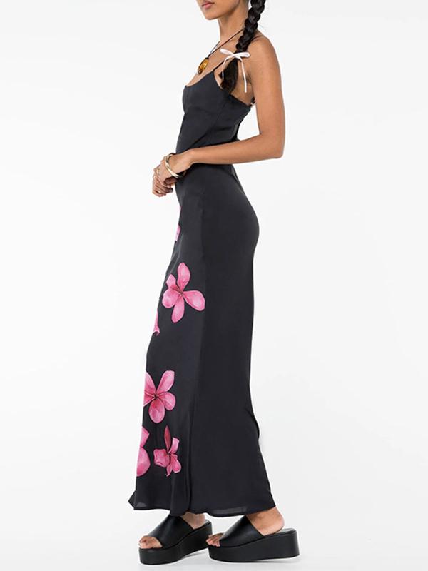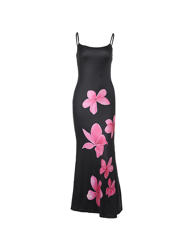 / Sexy Suspender Print Elastic Maxi Dresses