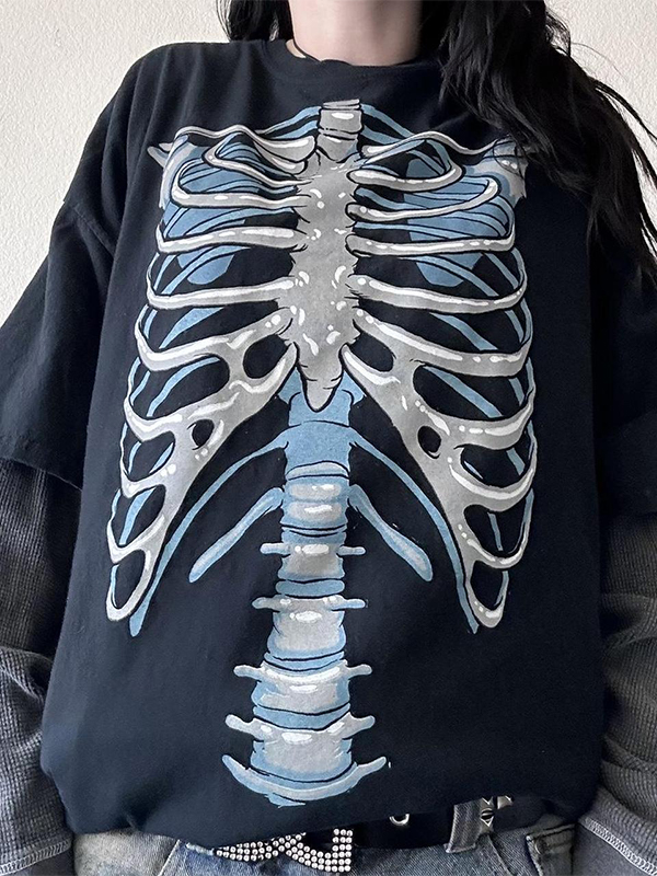 Skeleton Print Oversized Long Sleeve Tee quantity