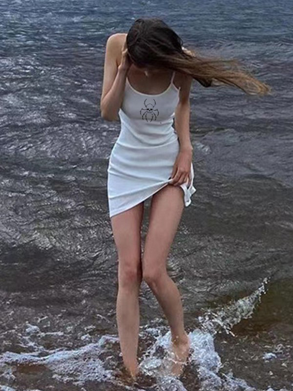 / Skull Print Casual White Mini Dress