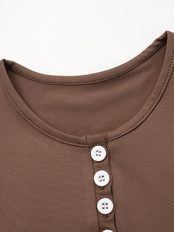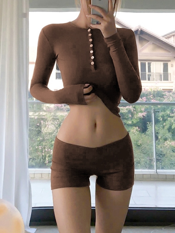 / Solid Breasted Long Sleeve Tee&Low Rise Shorts Set