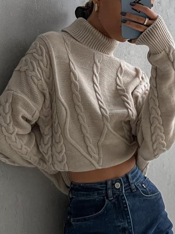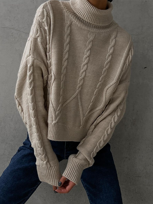Solid Cable Knit High Neck Sweater