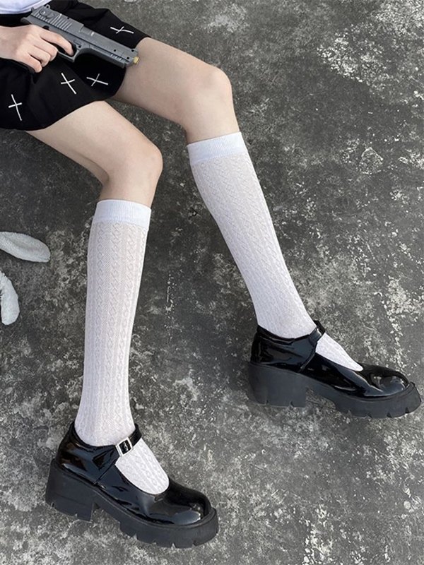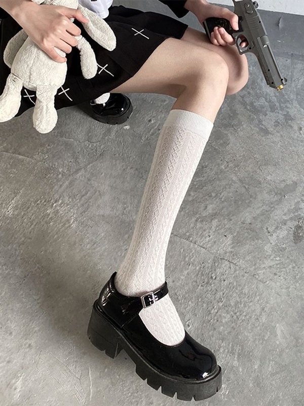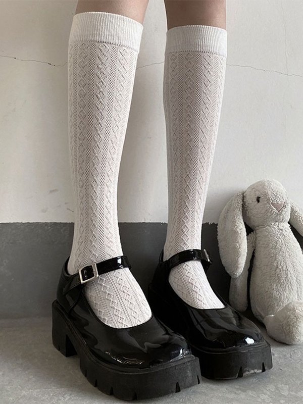 / Solid Color Jacquard Knee High Socks