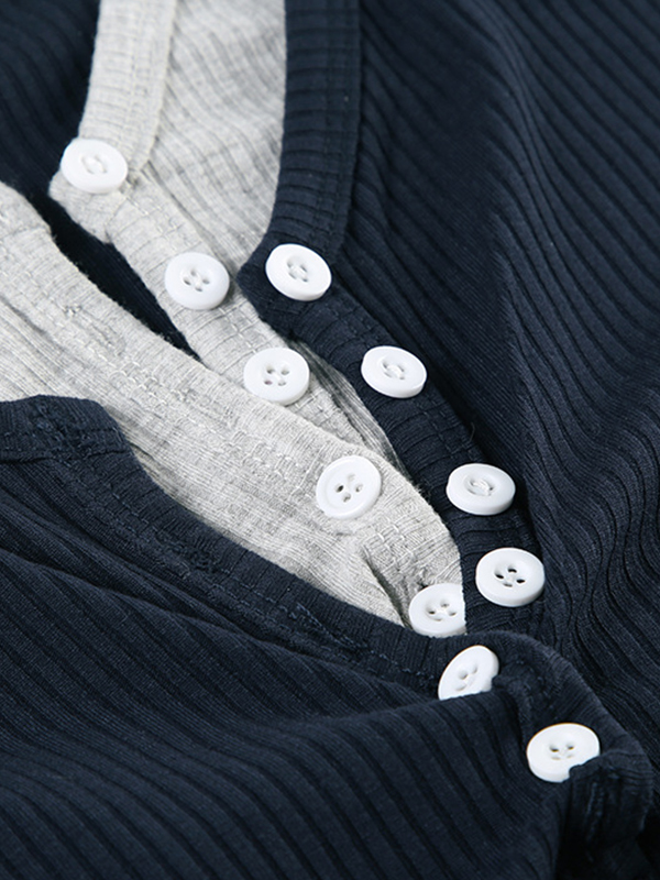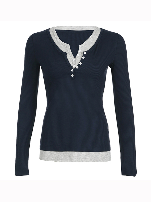 One Shoulder Fake Two Piece Print Long Sleeve Tee