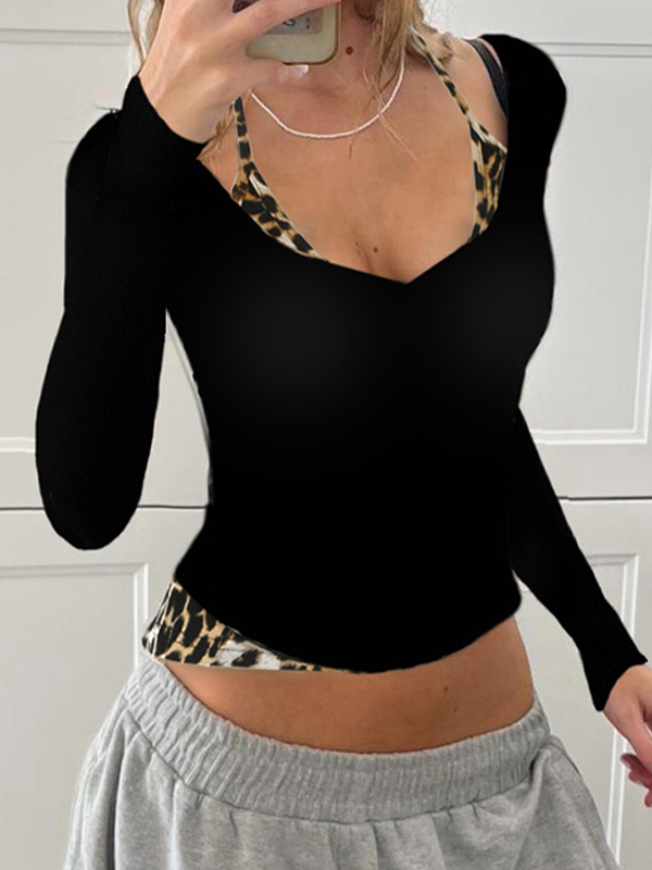 Solid Sweetheart Neck Slim Long Sleeve Tee
