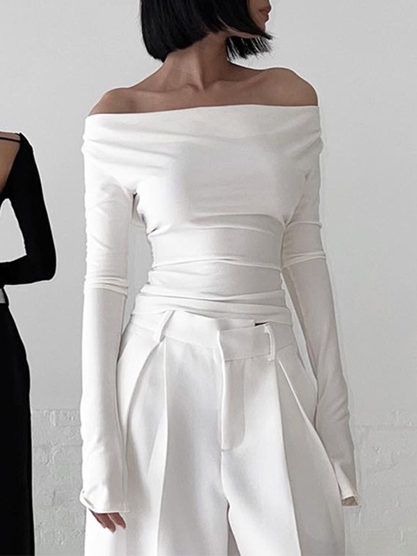 Solid Sweetheart Neck Slim Long Sleeve Tee