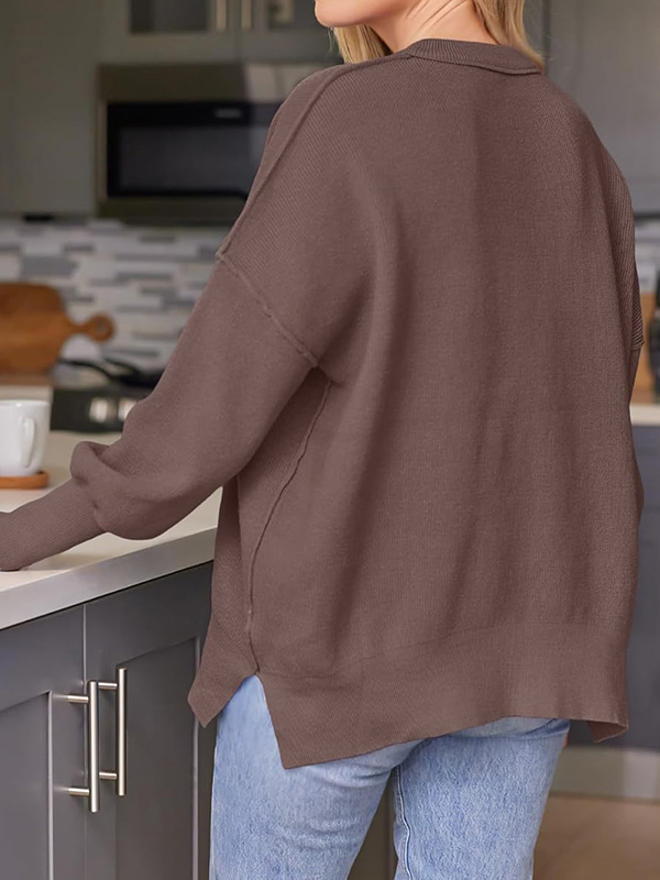 Solid Crew Neck Cape Sleeve Slit Sweater quantity