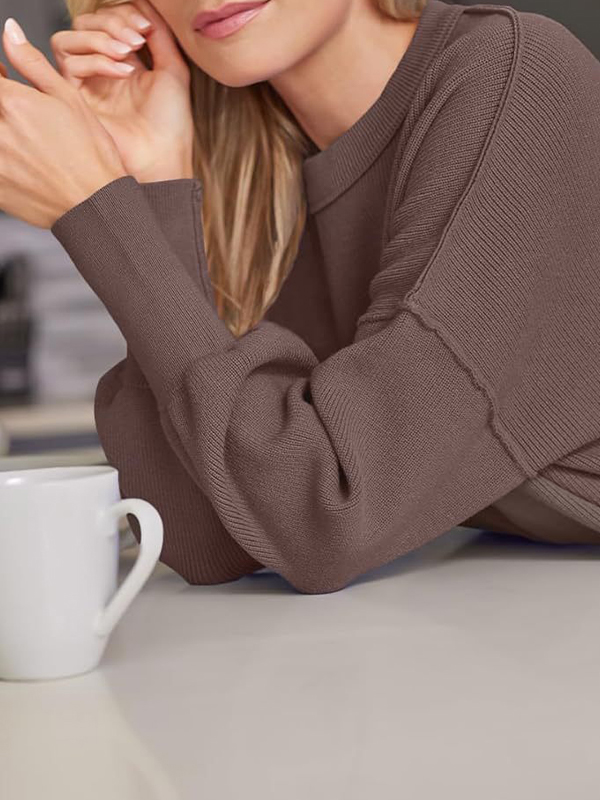 Solid Crew Neck Knit Sweater