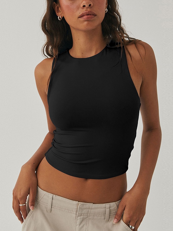 Solid Crew Neck Cropped Tank Top
