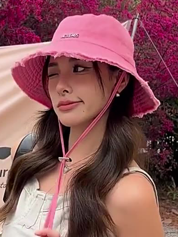 / Solid Metal Letter Decor Raw Trim Adjustable Fisherman Hat