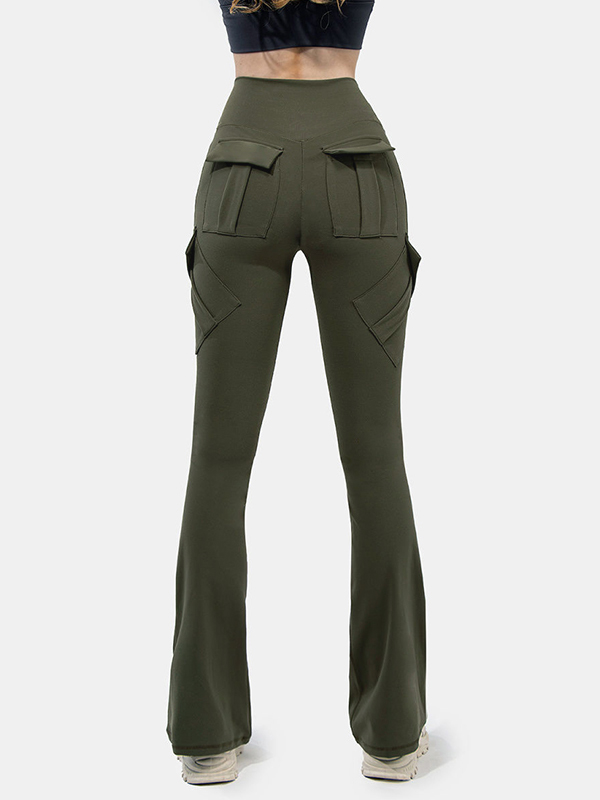 / Solid Multi Pocket High Rise Flare Leg Pants