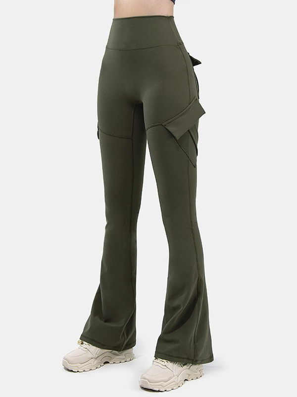 Solid Multi Pocket High Rise Flare Leg Pants