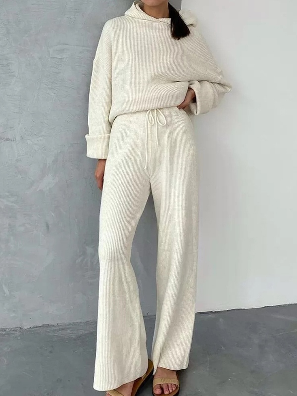 / Solid Oversized Hoodie&Drawstring Wide Leg Pants Set