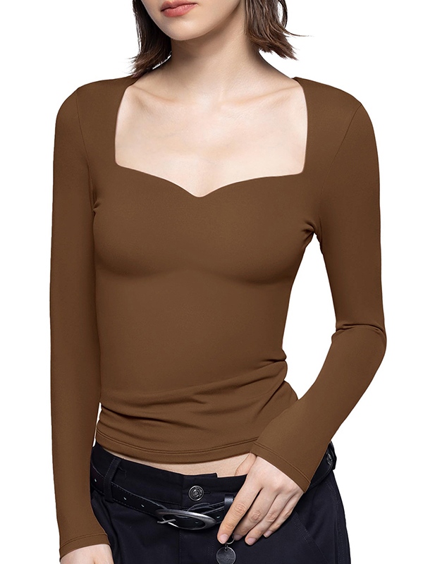 Solid Sweetheart Neck Slim Long Sleeve Tee