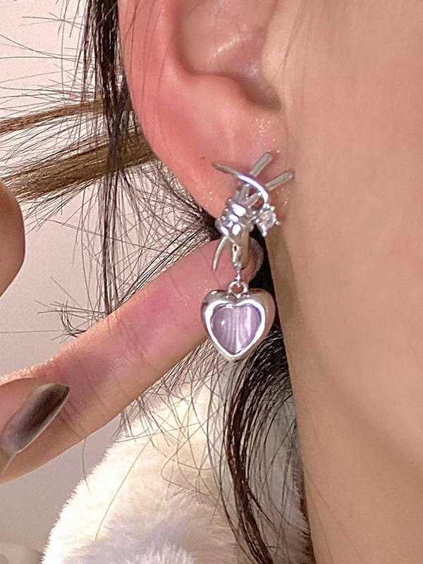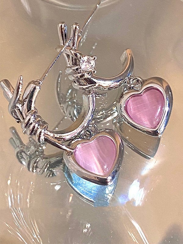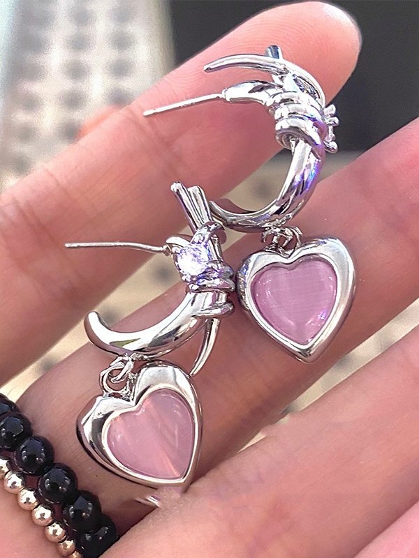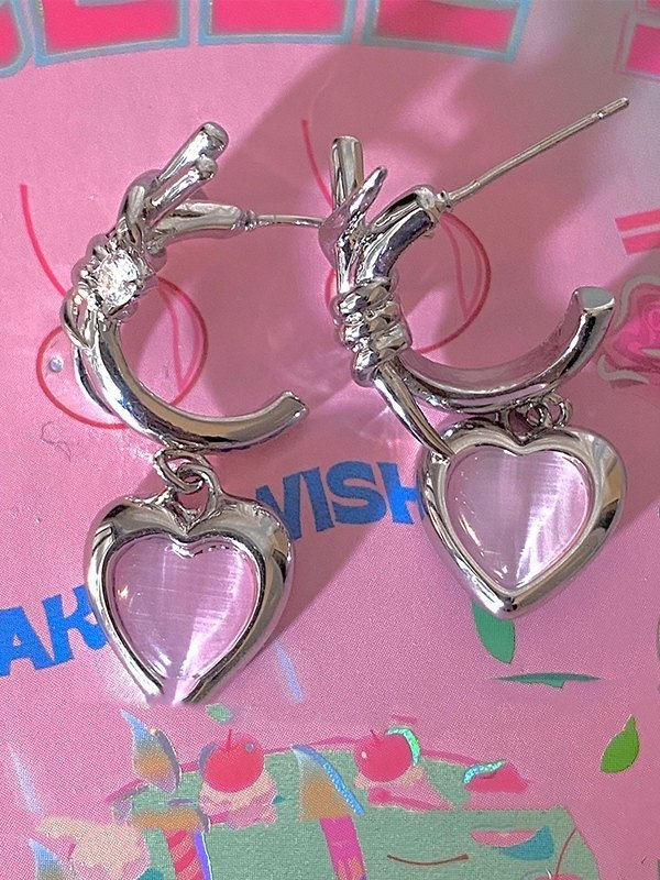 / Stone Heart Charm Earrings