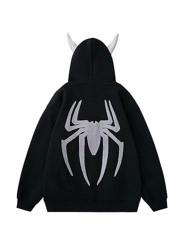 / Street Spider Embroidered Devil Styling Oversized Hoodie