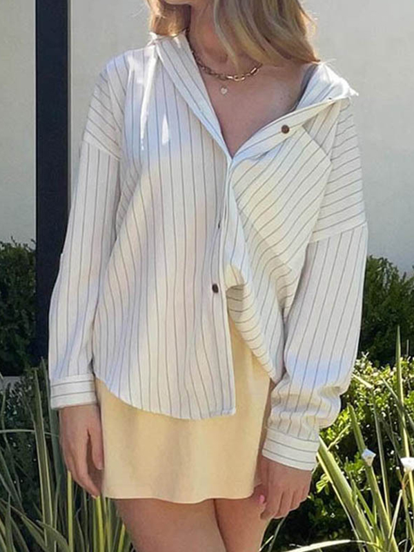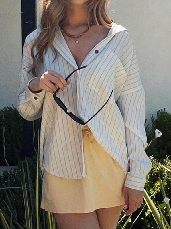 Stripe Casual Loose Long Sleeves Shirts quantity