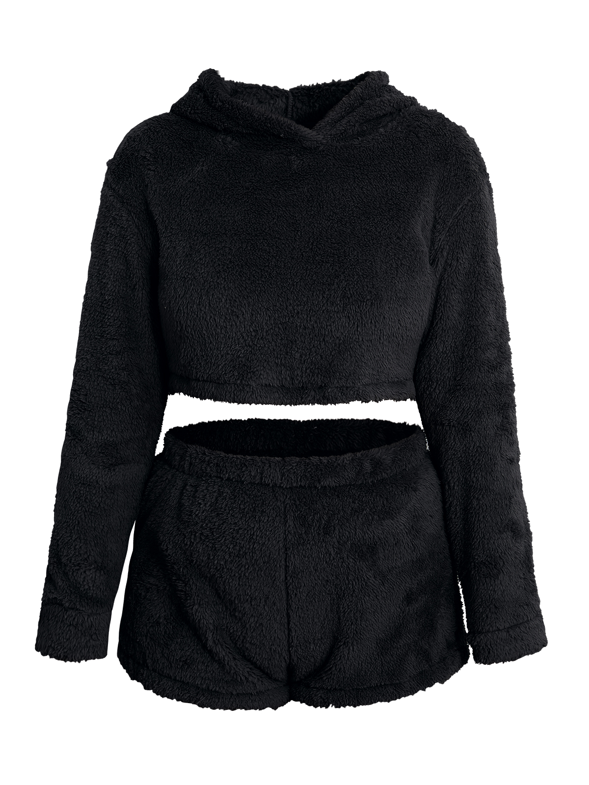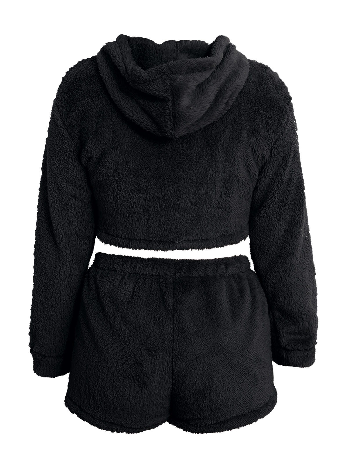 Teddy Solid Crop Top&Shorts Lounge Set quantity