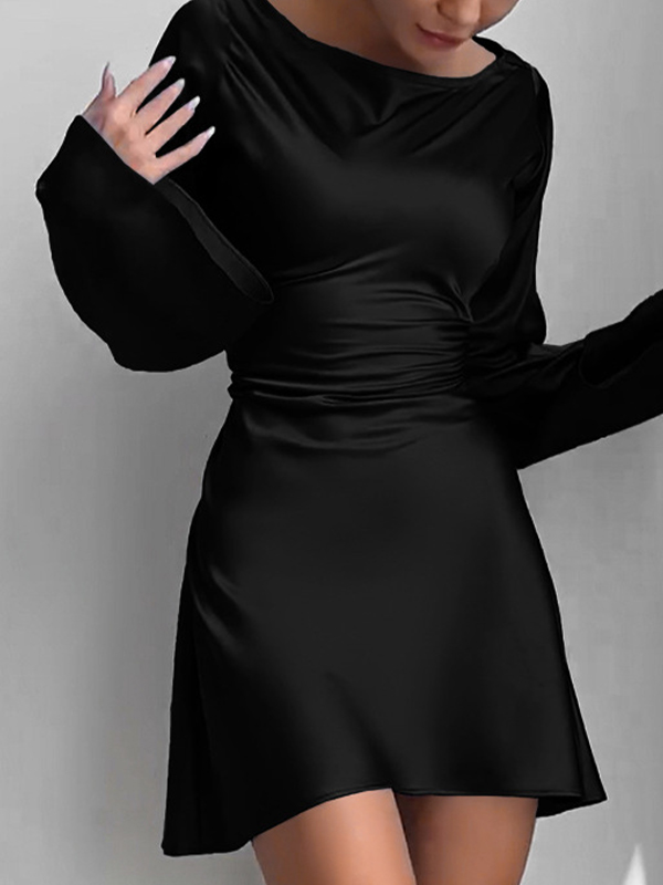 Temperament Waist-Cinching Straps In Satin Mini Dresses