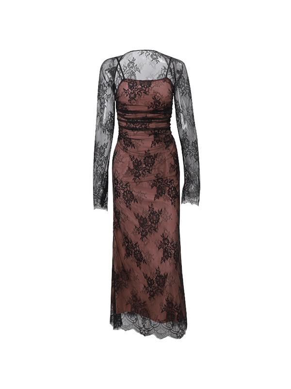 Temperament Waistcoat Long Sleeve Suspenders Maxi Dresses