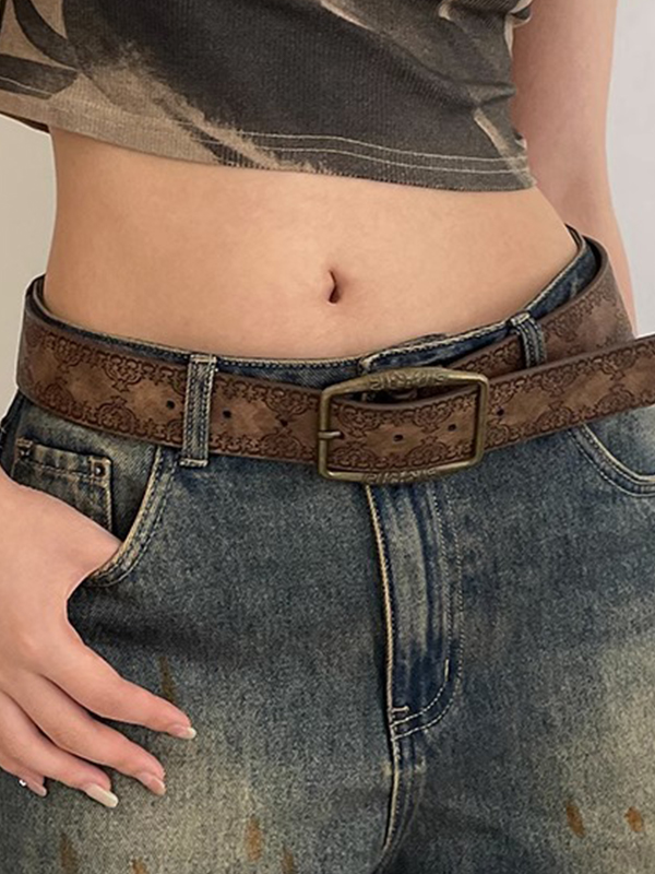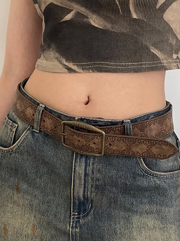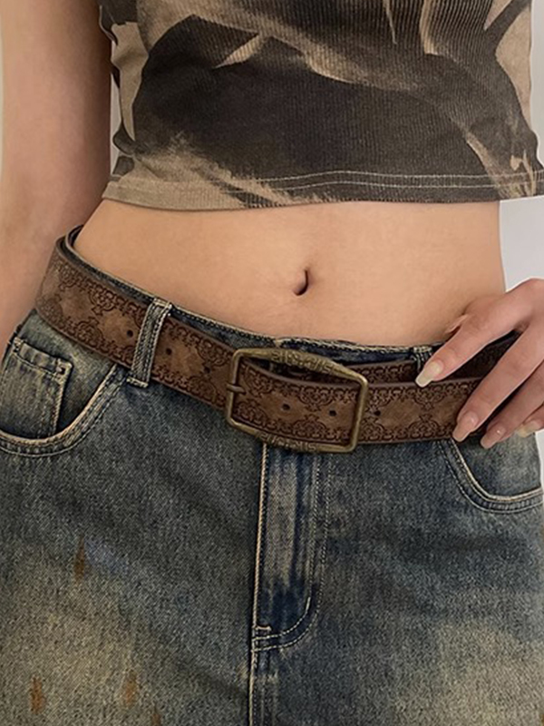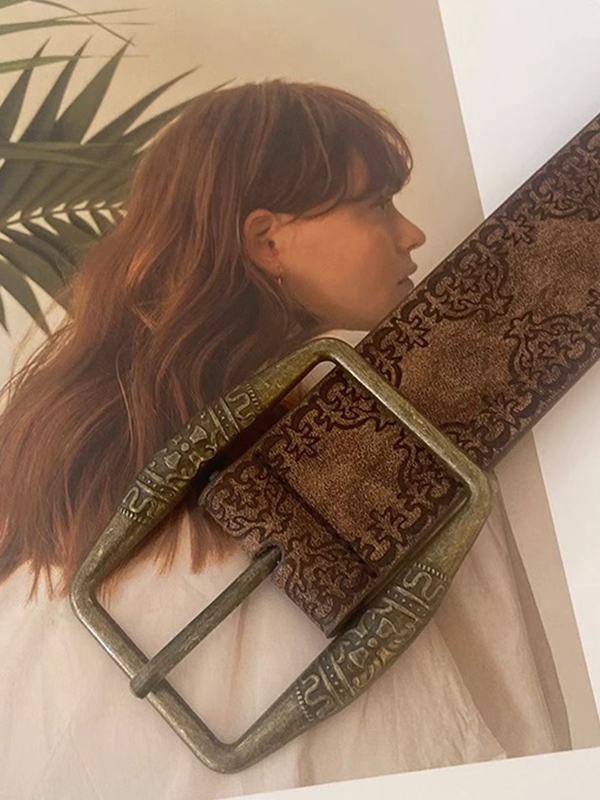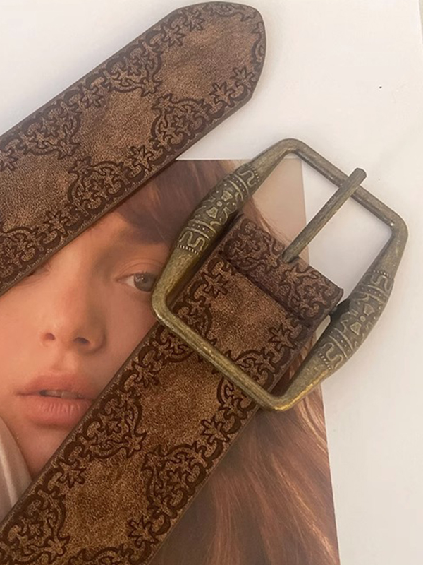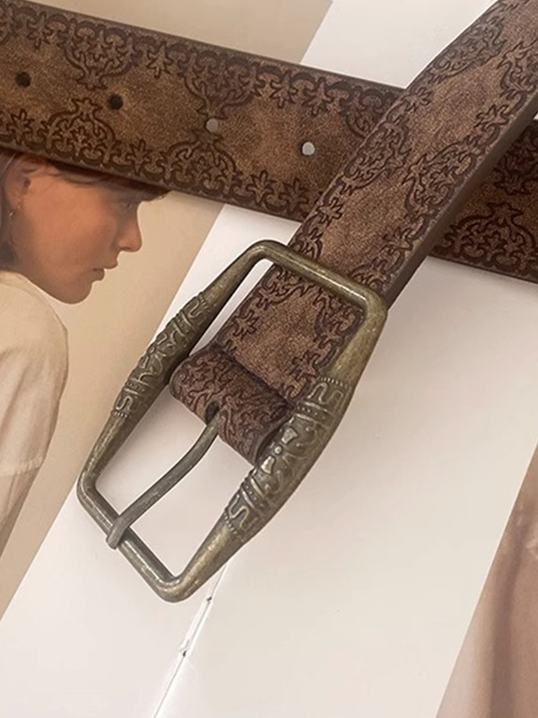 / Tribal Distressed Print Buckle Belt