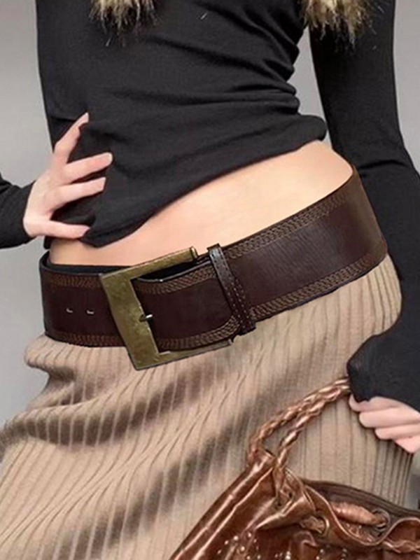 Vintage Brown Stitch Detail Buckle Belt