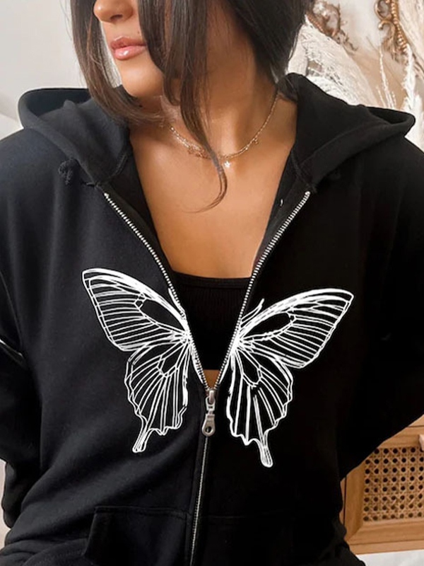 / Vintage Butterfly Print Zip Up Oversized Hoodie