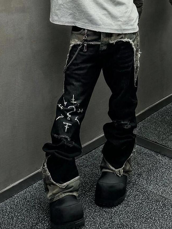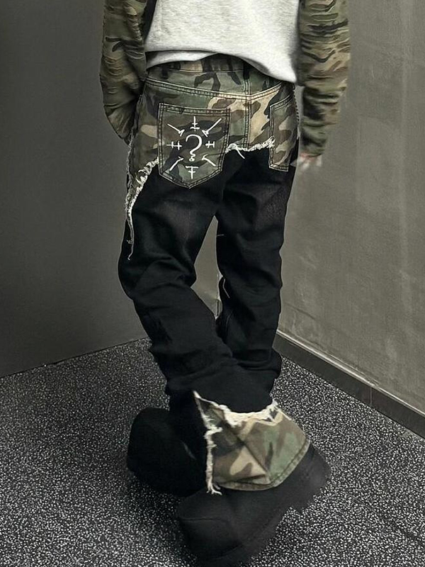 Vintage Camouflage Patchwork Flare Jeans quantity