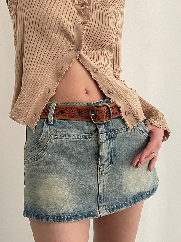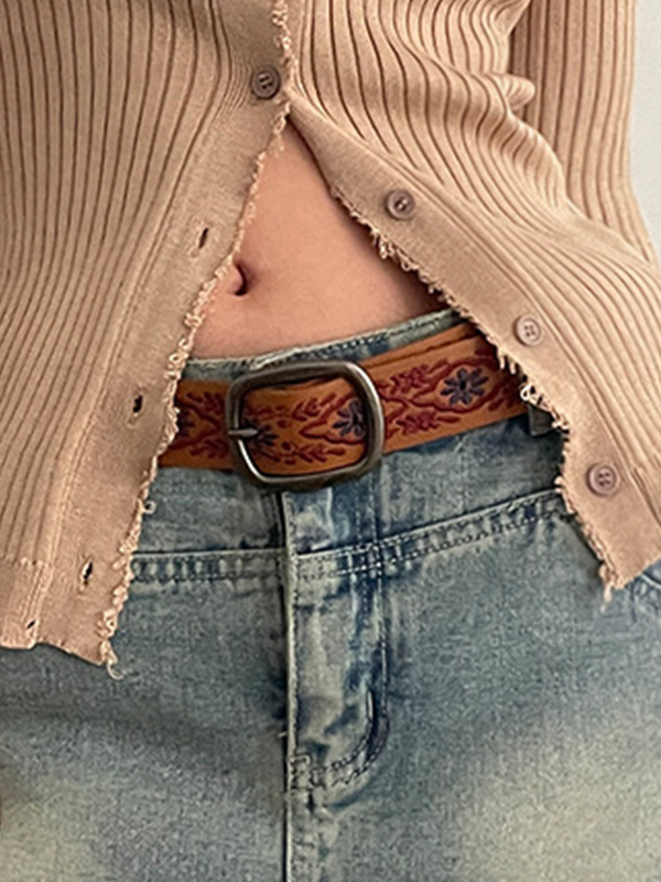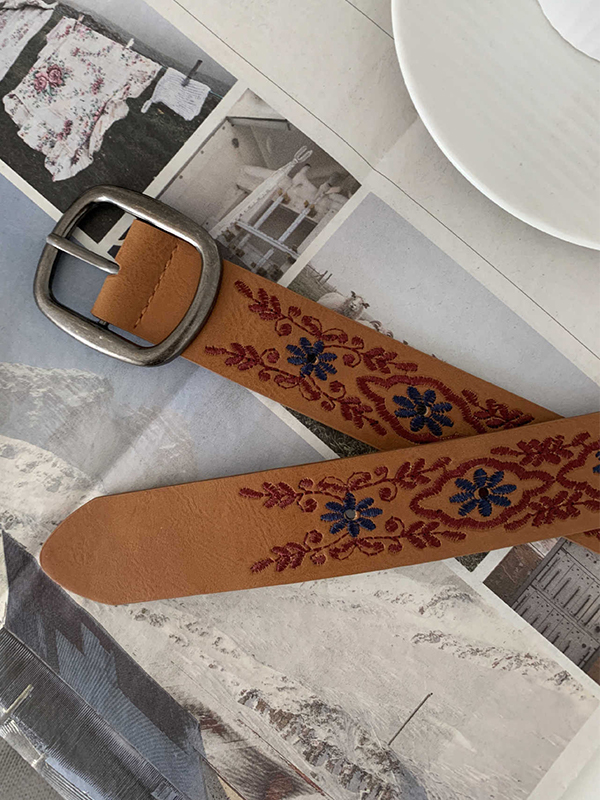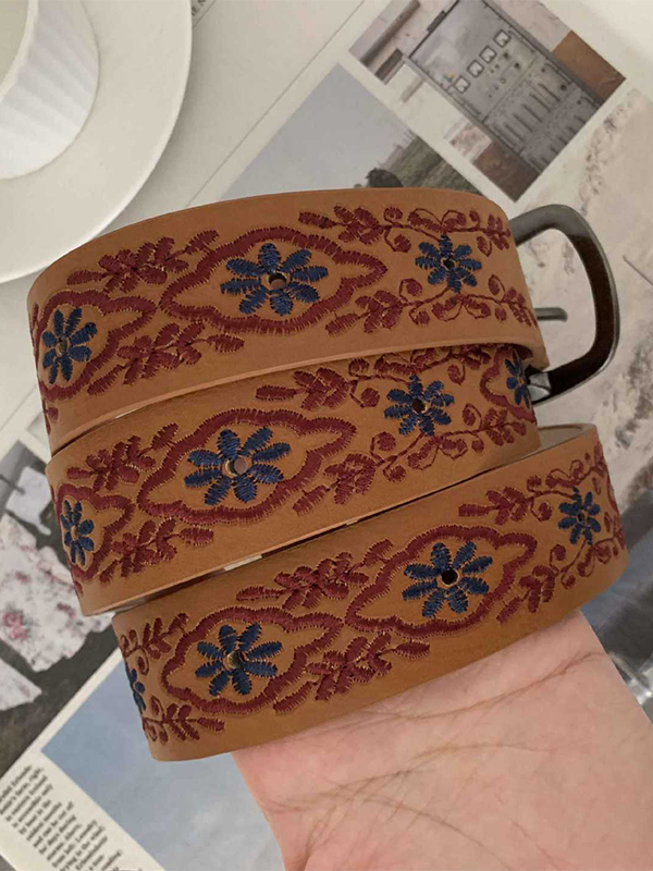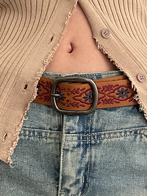 / Vintage Floral Embroidery Buckle Belt