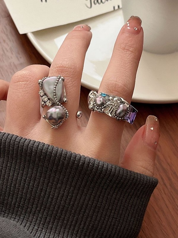 Vintage Irregular Faux Pearl Cuff Ring quantity
