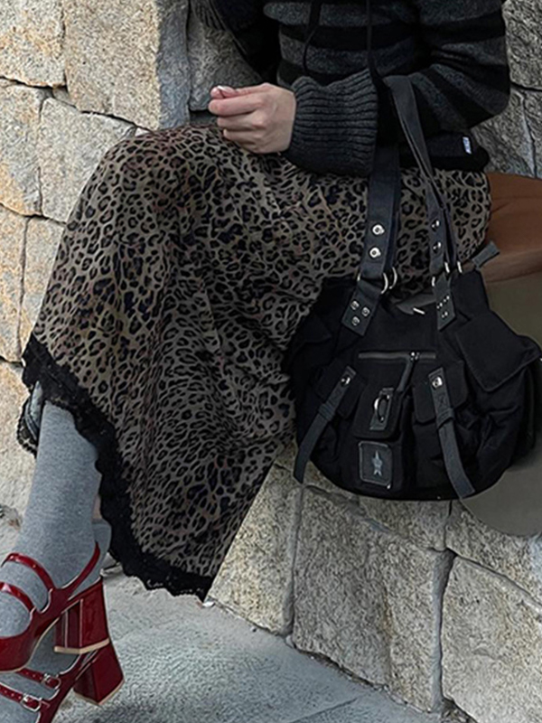 Vintage Leopard Patchwork Lace Maxi Skirts