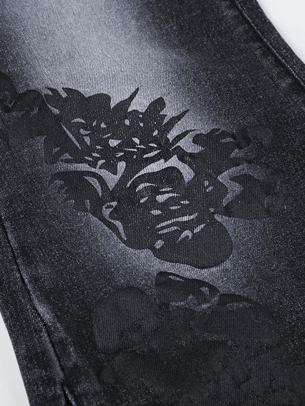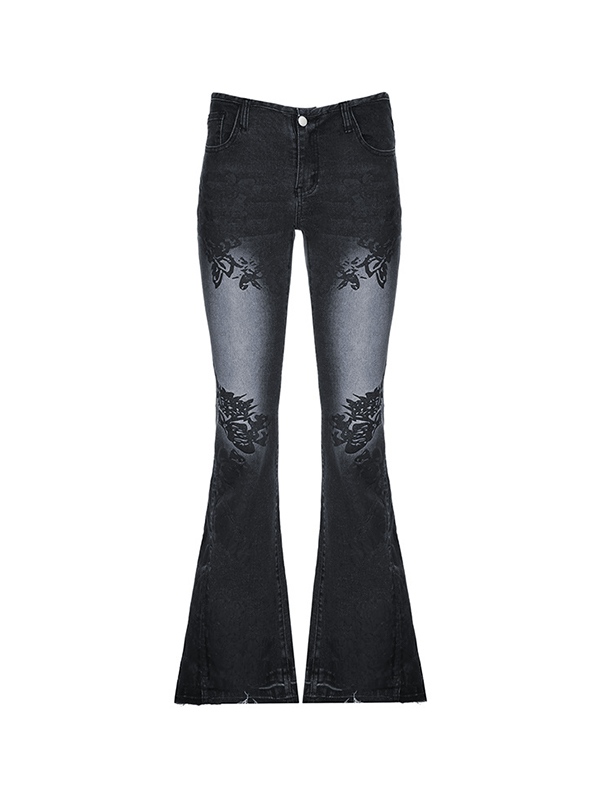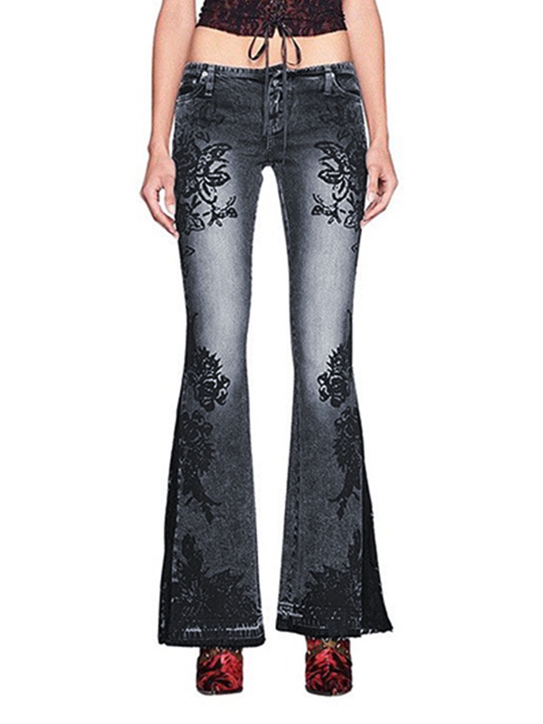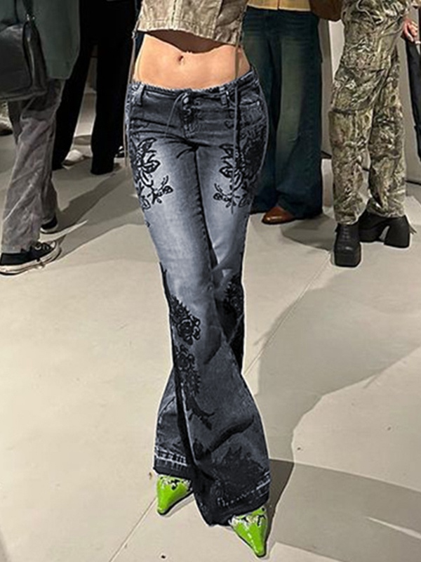 Vintage Plant Print Low Rise Flare Jeans