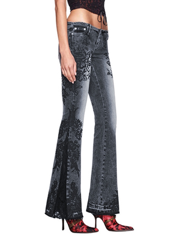 Vintage Plant Print Low Rise Flare Jeans quantity