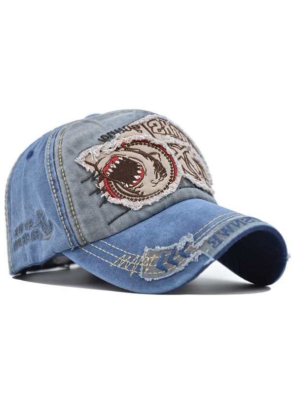Vintage Shark Embroidered Distressed Baseball Cap quantity