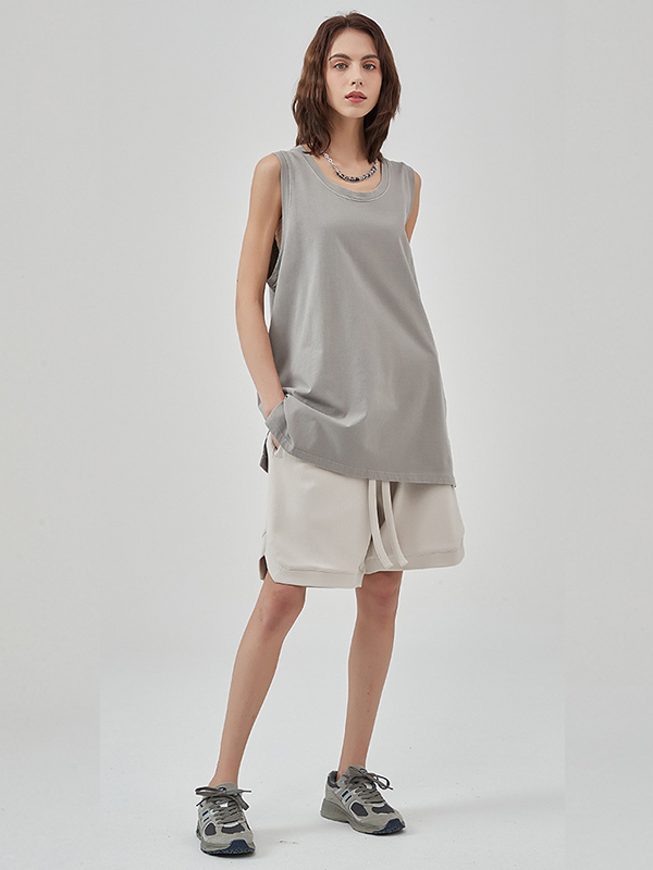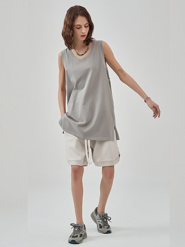 Washed Distressed Hem Slit Tank Top
