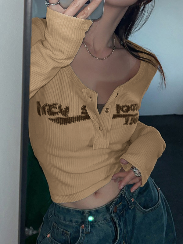Y2K Long Sleeve Ribbed Knit Crop Top