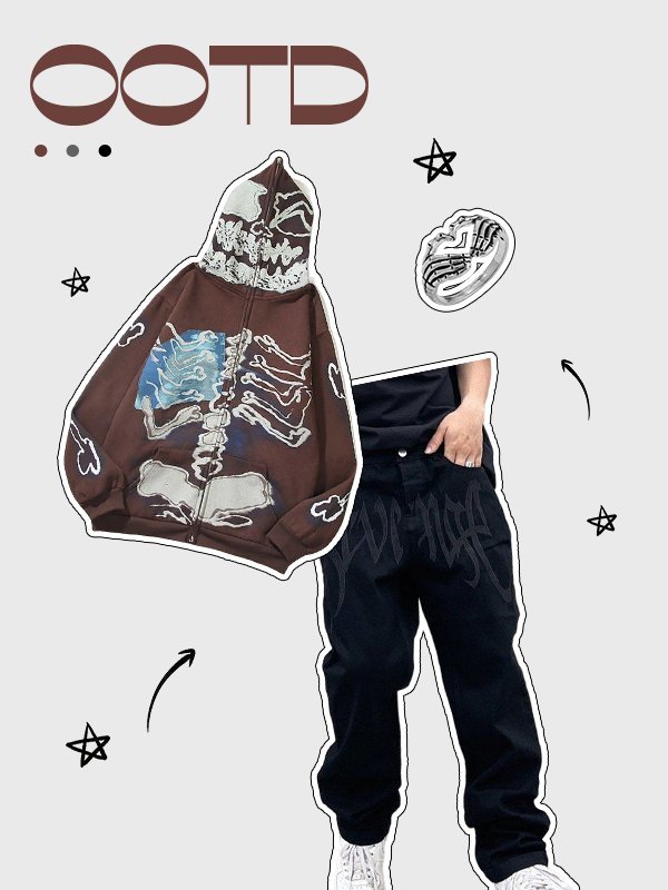 Men’s Punk Star Embroidery Zip Up Hoodie
