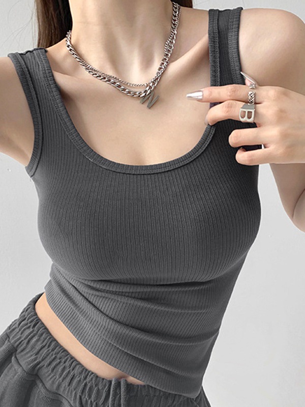 High Elasticity Solid U Neck Slim Tank Top
